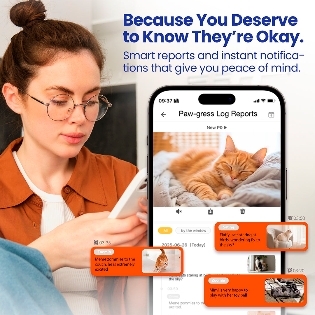 PickFun’s AI captures your pet’s day and turns the best moments into short clips. It detects activities, adds music and captions, and delivers highlights straight to the app — no effort needed.