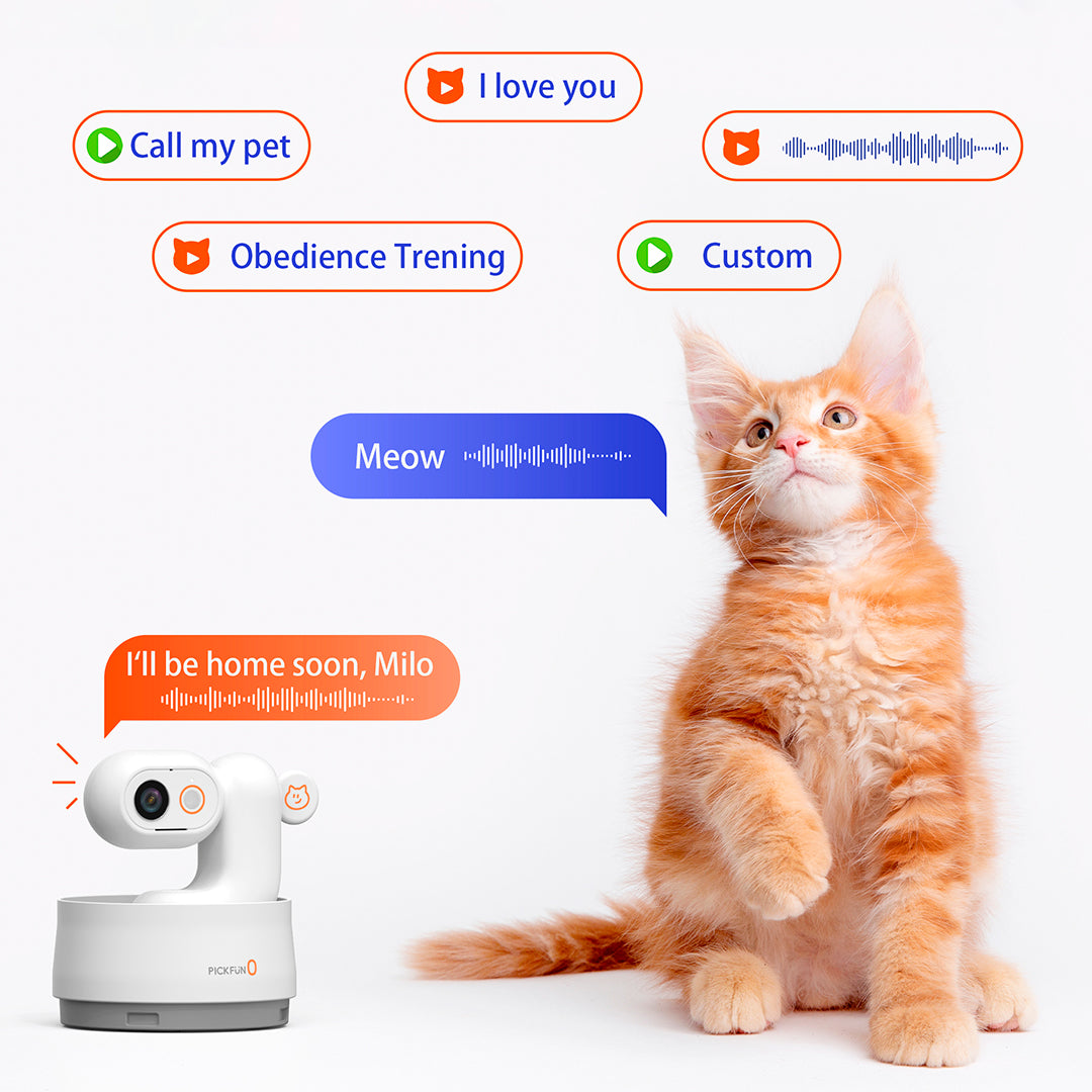 PickFun Smart Pet Camera lets you record and send your own voice messages straight from the app. Say hello, calm them down, or just remind them they’re loved — all through the camera’s built-in speaker. Your familiar voice keeps your pet connected to you, even when you’re miles away.